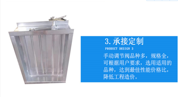 (3)該調節閥分手動、電動,按所用材料分:鐵板、鍍鋅板、鋁合金板、不銹鋼板四種,閥體結構及規格尺寸相同