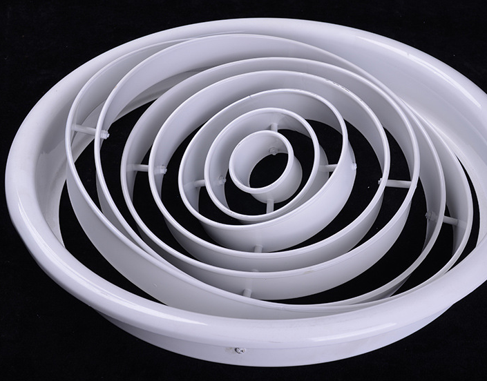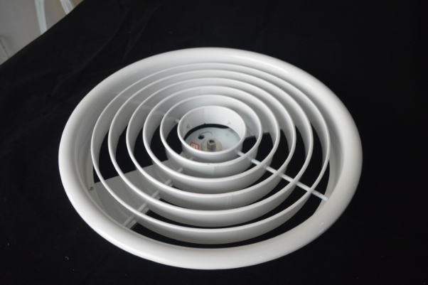 結構外觀為圓形,內心有多個圓環組成,能可上下45度調整風口阻力小,適用于劇院,體育館及樓層較高的場所,可附加風量調調節閥。產品外形美觀外。表面采用靜電噴塑,烤漆或者陽極處理。選用優質加厚鋁合金材料,更加耐用