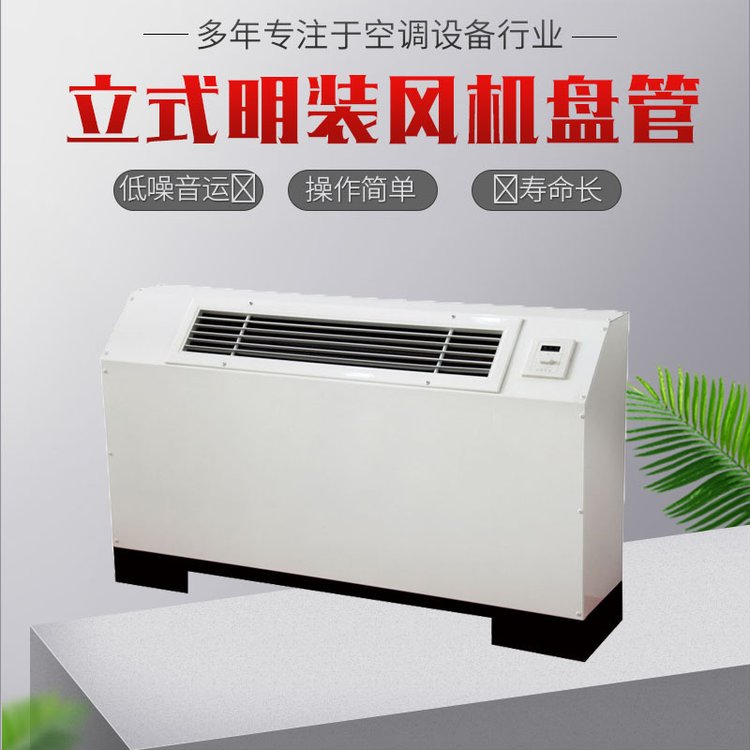立式明裝風機盤具有管效率高,能量足,風量大,噪音低,安全可靠,壽命長的優(yōu)點,是明裝風機盤管。